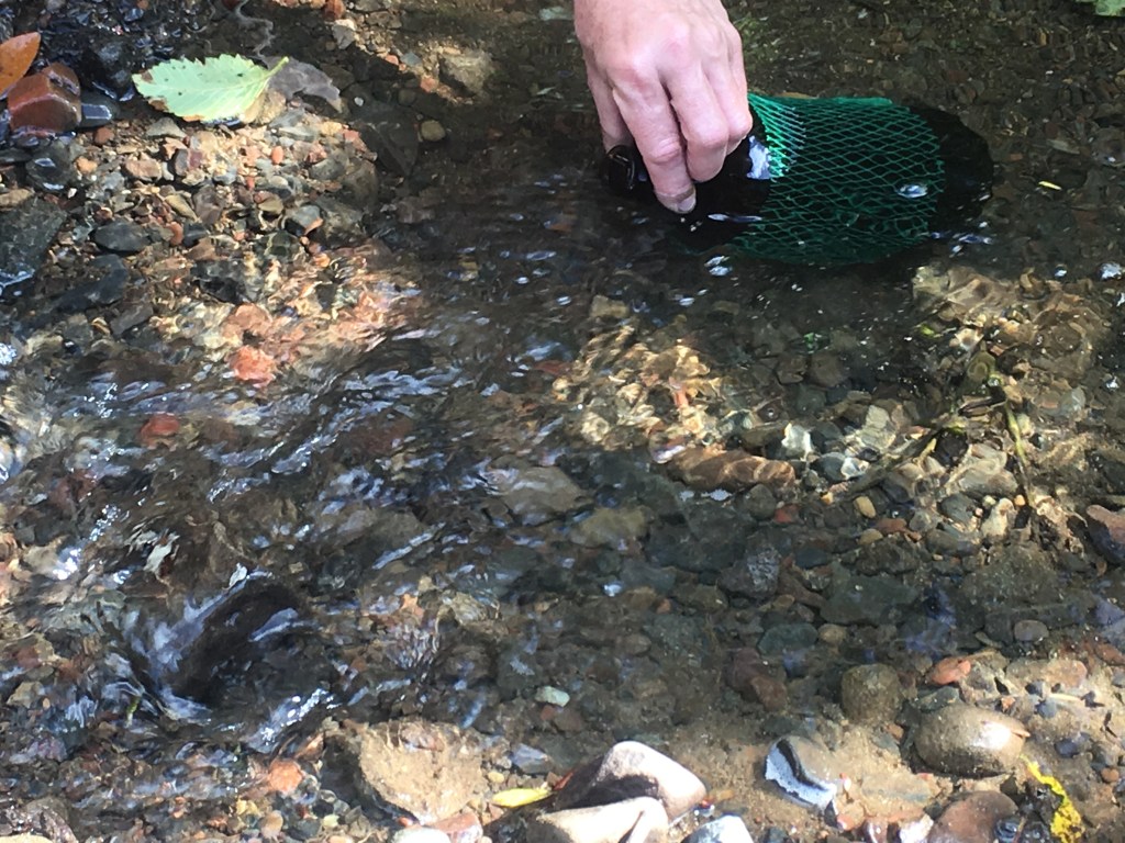 - Take a baseline sample, or several. Before logging activity begins, visit the sampling location and collect the sample (wearing gloves) using the container either sent by or directed to use by the lab who will be analyzing the sample. Label, seal and package as directed. It is best if you take footage that shows the water being collected, the container being labeled/sealed/packaged, and an image of the GPS location all in one video. If you want to be sure your results are verified by state agencies, you will need to have someone from DEQ or another qualified agency person with you when you collect the sample.
